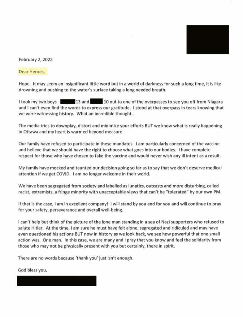 The final text snippet comes from this letter, written by an Ontario woman ↓ (her home address, her name, and her sons’ names have been redacted).